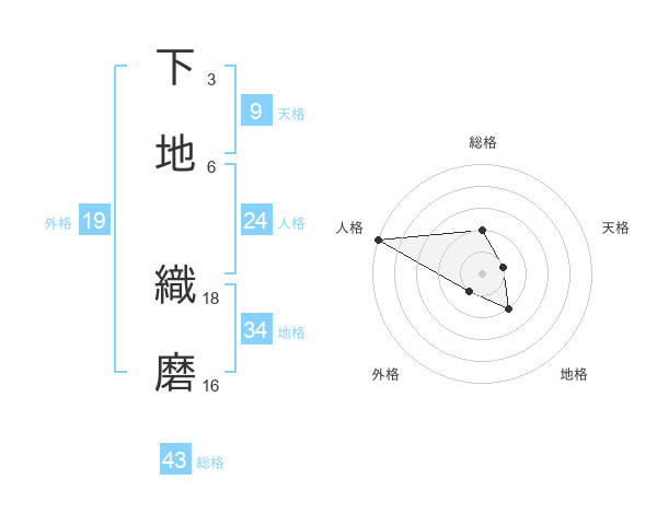 下地 織磨さんの総格は43画の2点!