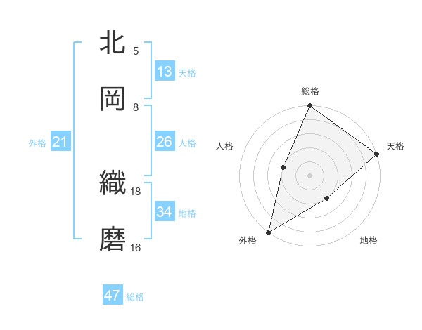 北岡 織磨さんを姓名の画数から五運を鑑定