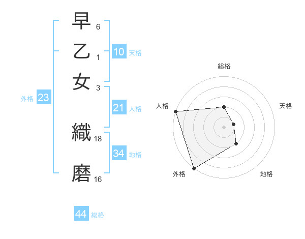 早乙女 織磨さんを姓名の画数から五運を鑑定
