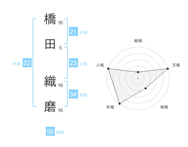 橋田 織磨さんを姓名の画数から五運を鑑定