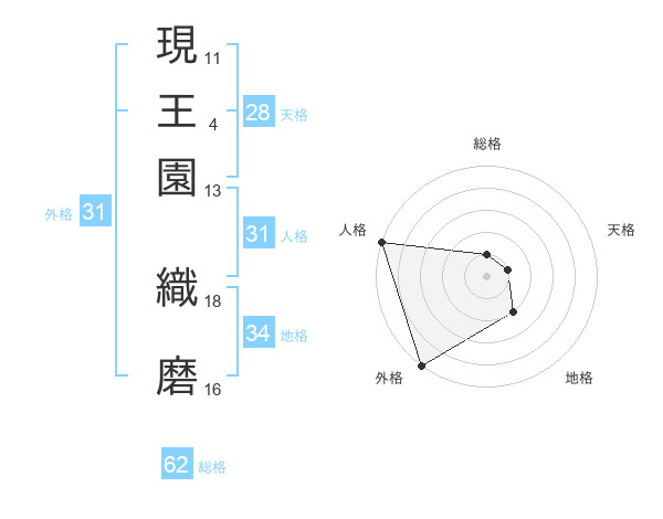 現王園 織磨さんの外格は31画の5点!