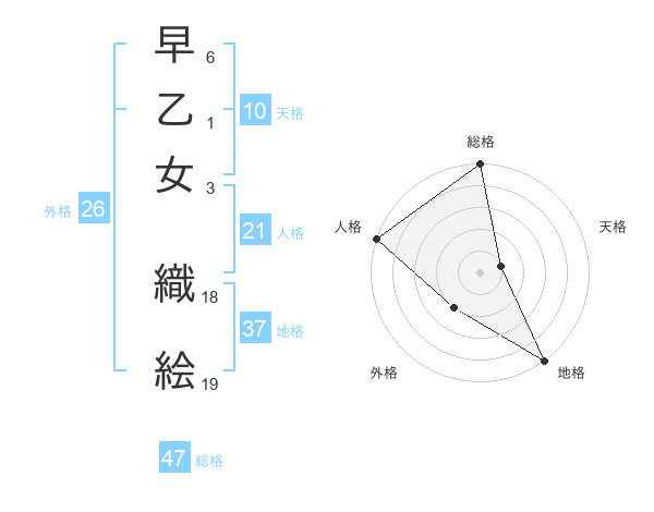 早乙女 織絵さんを姓名の画数から五運を鑑定