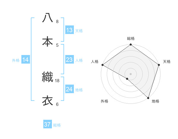 八本 織衣さんの総格は37画の5点!
