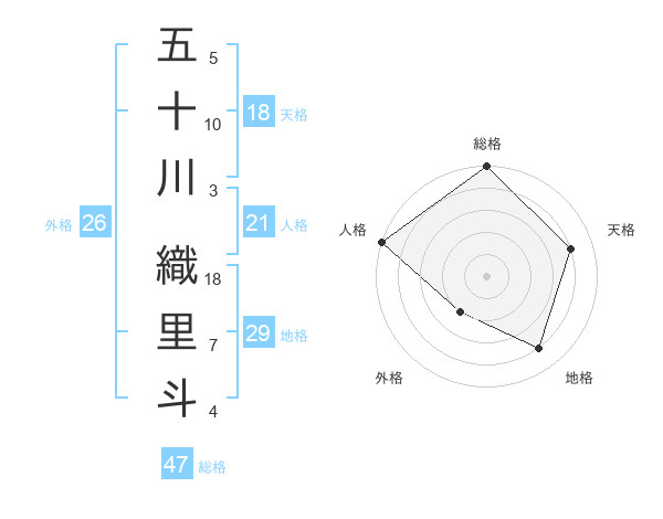 五十川 織里斗さんを姓名の画数から五運を鑑定