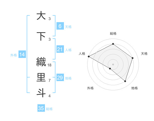 大下 織里斗さんの総格は35画の4点