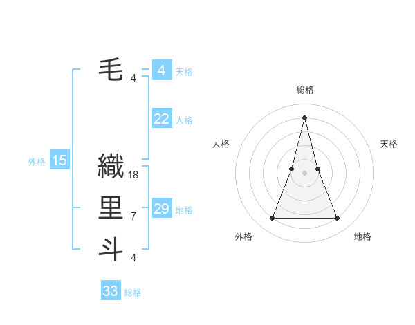 毛 織里斗さんを姓名の画数から五運を鑑定