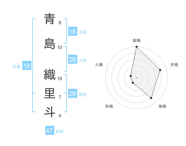 青島 織里斗さんを姓名の画数から五運を鑑定