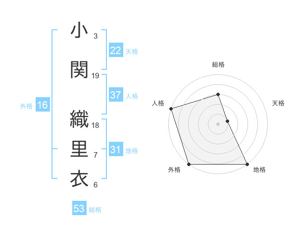 小関 織里衣さんの総格は53画の3点!