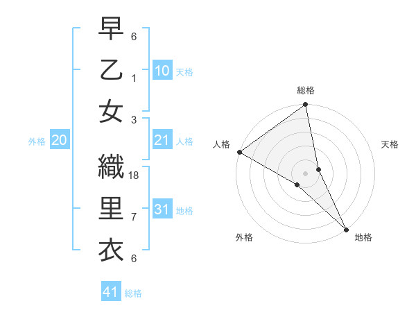 早乙女 織里衣さんの地格は31画の5点!