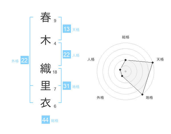 春木 織里衣さんを姓名の画数から五運を鑑定