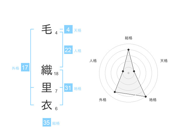 毛 織里衣さんの総格は35画の4点!