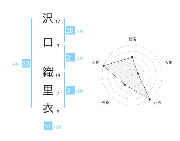 沢口 織里衣さんを姓名の画数から五運を鑑定