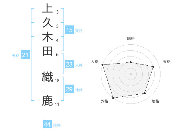 上久木田 織鹿さんの外格は21画の5点!