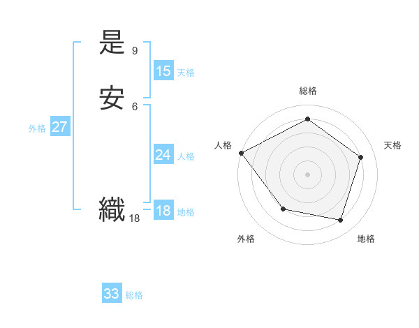 是安 織さんの総格は33画の4点!