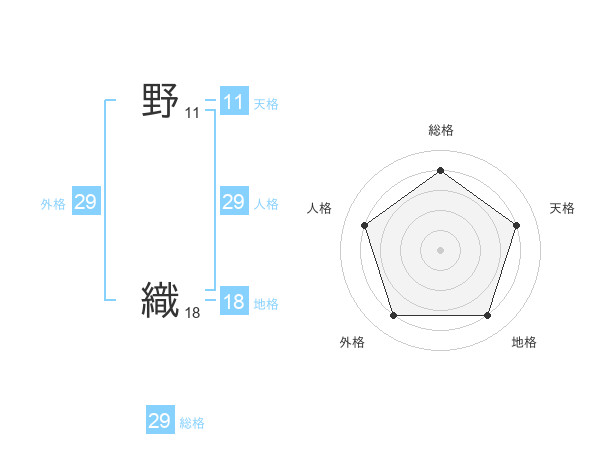 野 織さんの人格は29画の4点!