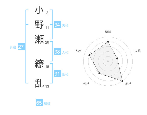 小野瀬 繚乱さんを姓名の画数から五運を鑑定