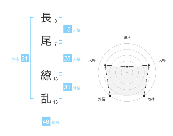 長尾 繚乱さんを姓名の画数から五運を鑑定