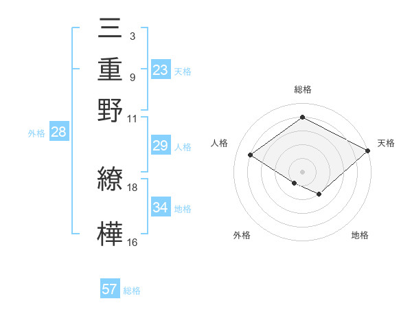 三重野 繚樺さんを姓名の画数から五運を鑑定