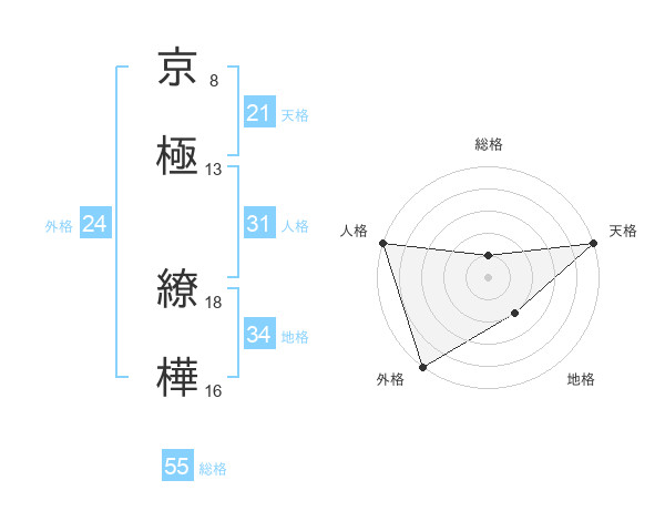 京極 繚樺さんの天格は21画の5点!