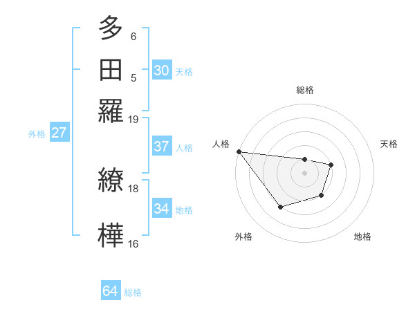 多田羅 繚樺さんを姓名の画数から五運を鑑定