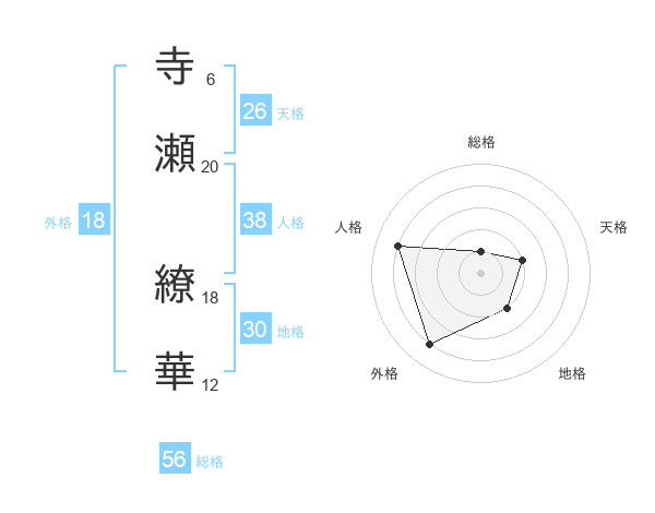 寺瀬 繚華さんの人格は38画の4点!