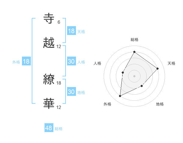 寺越 繚華さんの総格は48画の4点!