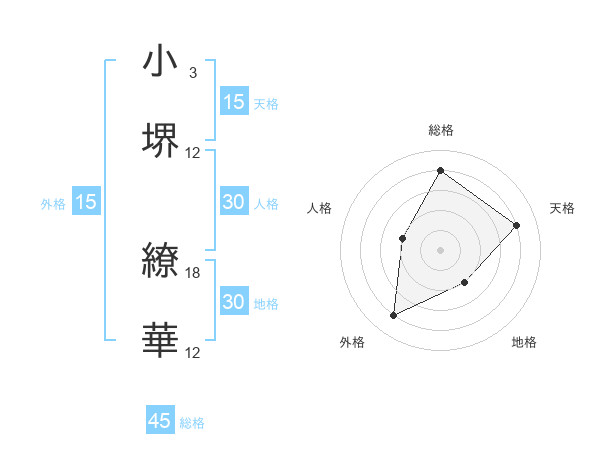 小堺 繚華さんを姓名の画数から五運を鑑定