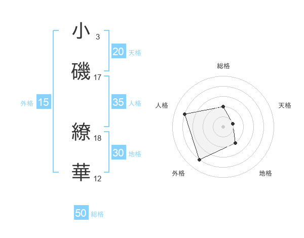 小磯 繚華さんを姓名の画数から五運を鑑定