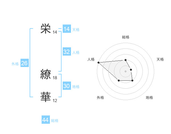 栄 繚華さんの総格は44画の2点!