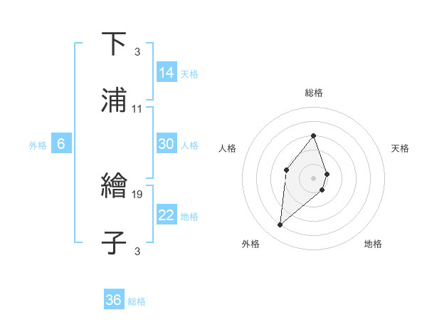 下浦 繪子さんの総格は36画の3点!