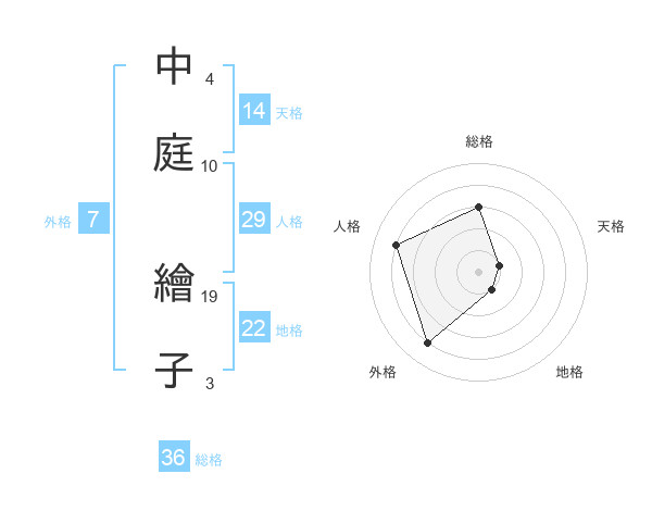 中庭 繪子さんの天格は14画の1点!
