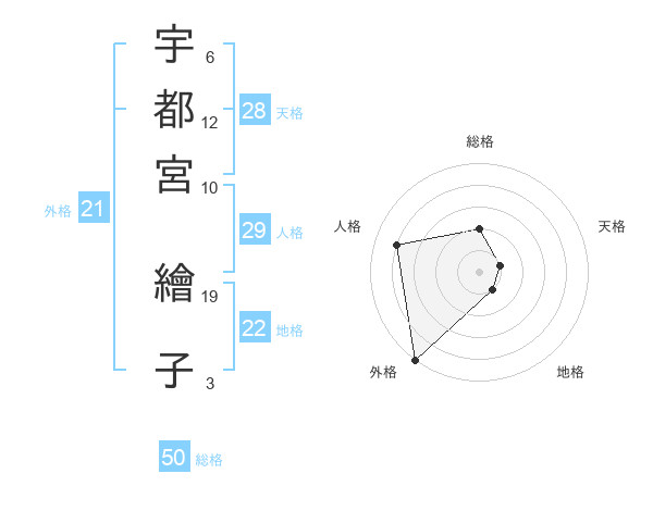 宇都宮 繪子さんを姓名の画数から五運を鑑定
