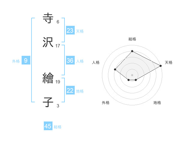 寺沢 繪子さんの天格は23画の5点!