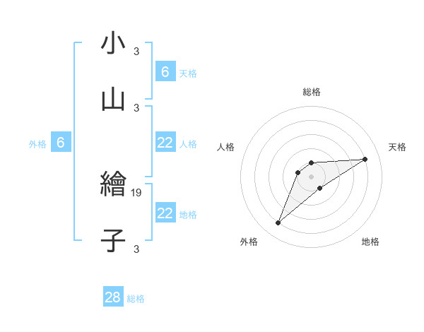 小山 繪子さんの地格は22画の1点!