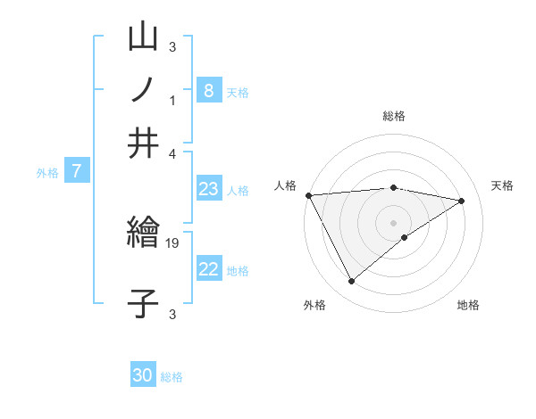 山ノ井 繪子さんを姓名の画数から五運を鑑定