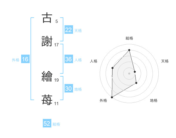 古謝 繪苺さんの総格は52画の4点!