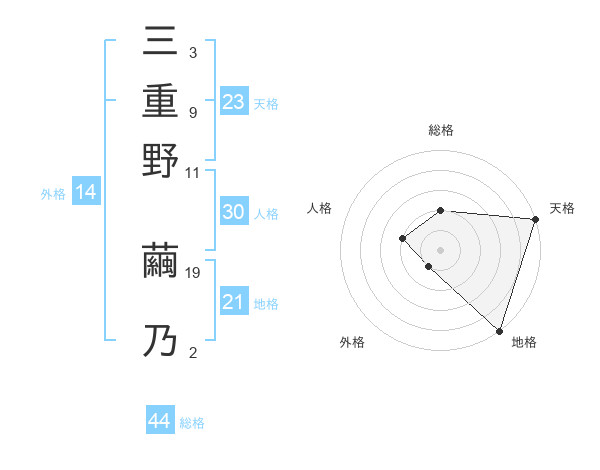 三重野 繭乃さんを姓名の画数から五運を鑑定