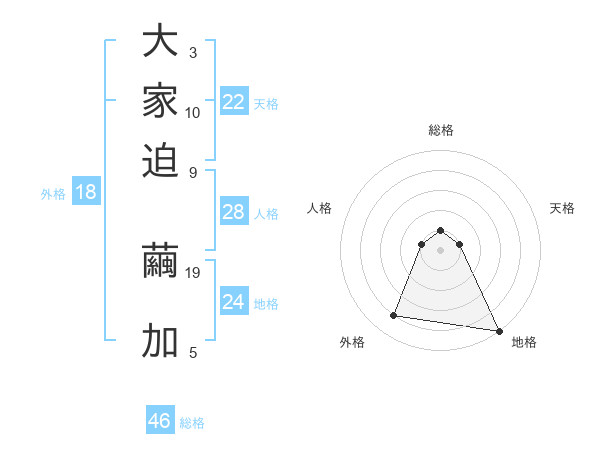 大家迫 繭加さんの外格は18画の4点!