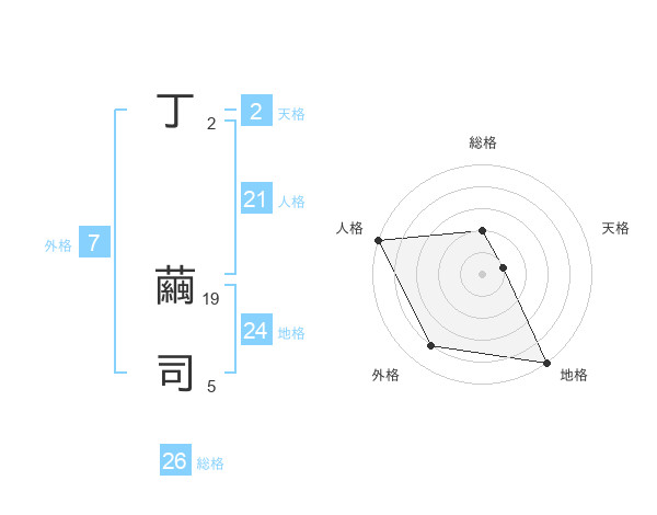 丁 繭司さんの総格は26画の2点!