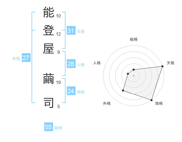 能登屋 繭司さんを姓名の画数から五運を鑑定