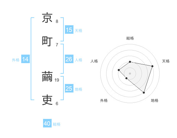 京町 繭吏さんの総格は40画の2点!