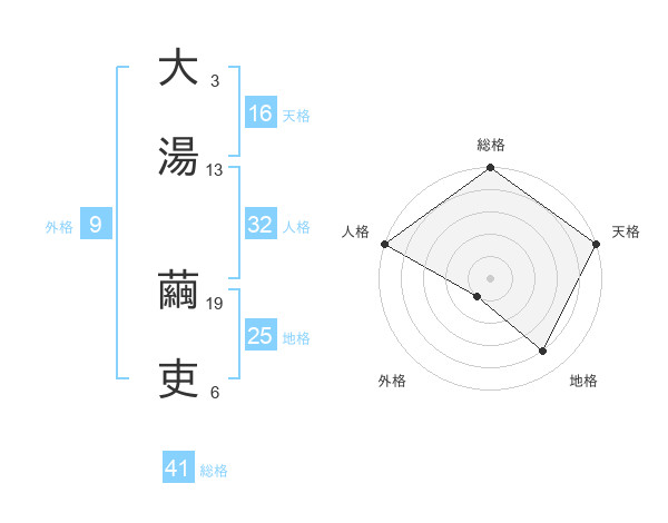 大湯 繭吏さんの天格は16画の5点!