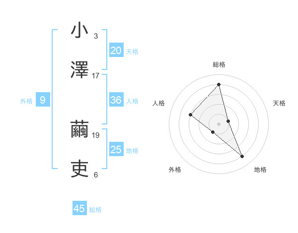小澤 繭吏さんの総格は45画の4点!