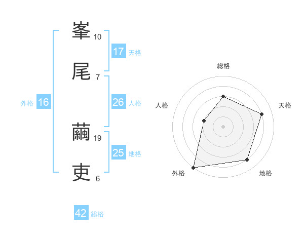 峯尾 繭吏さんの外格は16画の5点!