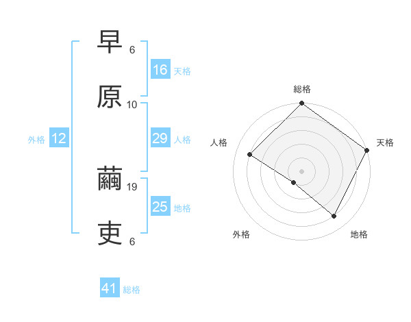 早原 繭吏さんの総格は41画の5点!