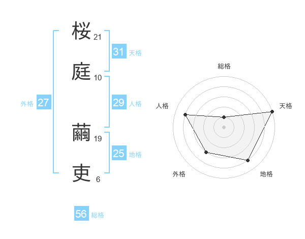 桜庭 繭吏さんの総格は56画の1点!