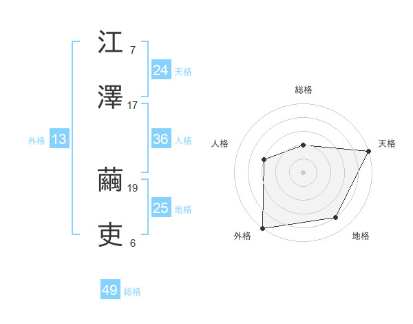江澤 繭吏さんの外格は13画の5点!