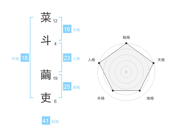 菜斗 繭吏さんの総格は41画の5点!