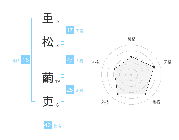 重松 繭吏さんの天格は17画の4点!