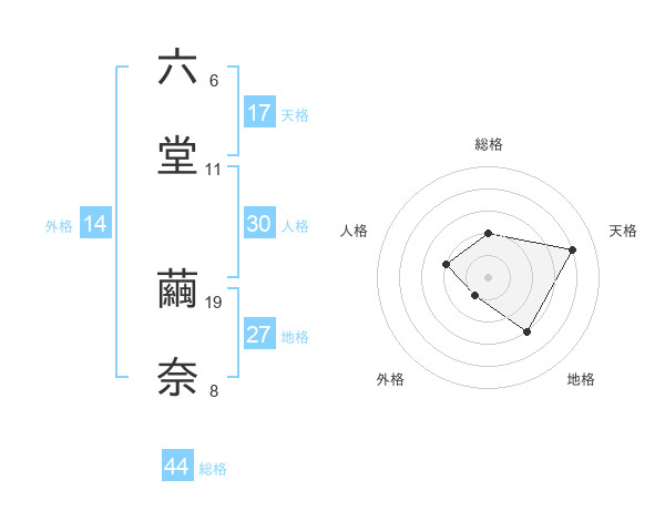 六堂 繭奈さんの総格は44画の2点!